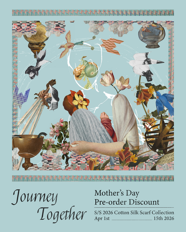 Our new Spring/Summer 2026 Cotton Silk Scarf Collection carries a light, breeze-like softness. It gently accompanies each moment of life’s journey, echoing the evolving bond between mother and child. Its evolving patterns move courageously between tradition and innovation.